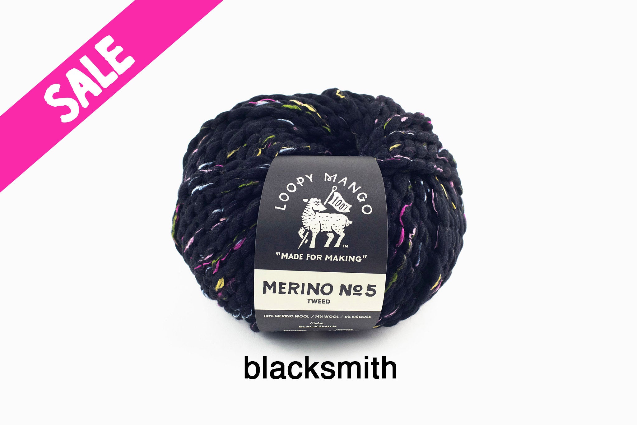 Fiber Content Note: Merino No. 5 TWEED colors Flamingo, Stardust, and Blacksmith have different fiber content: 80% Merino Wool, 14% Wool, 6% Viscose